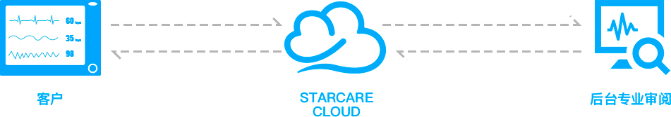 远程读图服务是配合星康云技术,进行心电数据的远距离传输交流,再通过专业的后台临床读图团队对经过星康算法处理的心电数据进行审阅,最终把人工审核后的心电数据通过云端返回客户。